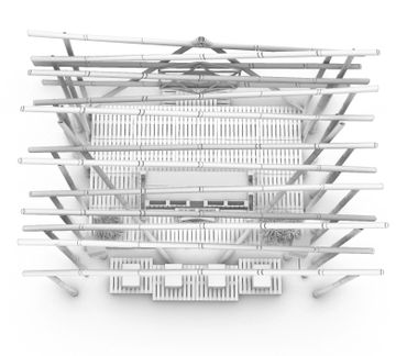 Un diseño espacial de un escenario no convencional para eventos musicales al aire libre en San Pablo La Laguna. La forma resultante creada con una estructura asimétricas de marcos a escala, que varían en altura y longitud creando un ritmo continuo y variado. El enfoque de diseño es el resultados de las visitas al sitio y varias conversaciones con los creadores del festival